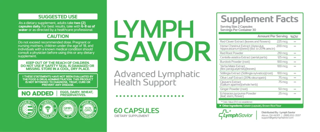 Lymph Savior is formulated with a blend of natural ingredients that work together to support optimal lymphatic health, improve circulation, and help the body naturally reduce swelling and flush out toxins. Here’s a closer look at the primary ingredients and how they contribute to the benefits of Lymph Savior: